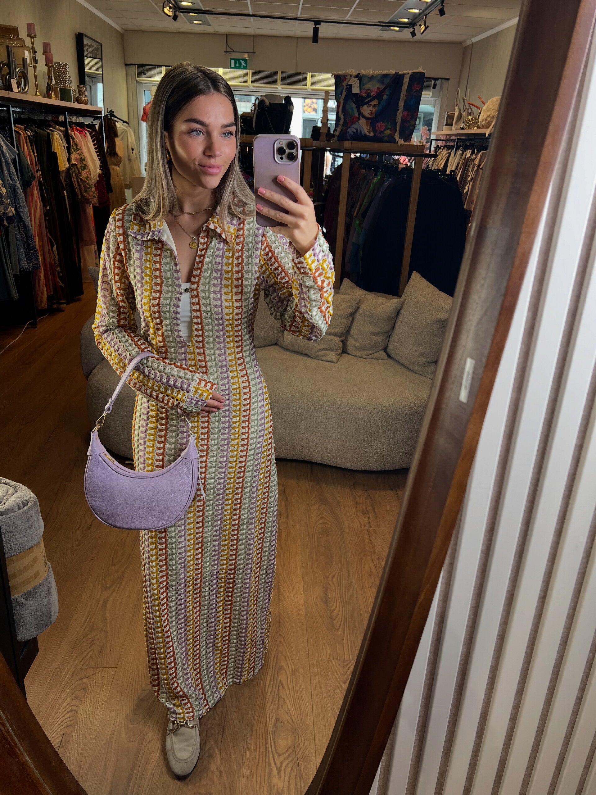 De jurk Jollya is gevoerd,kraag,met lange mouw.