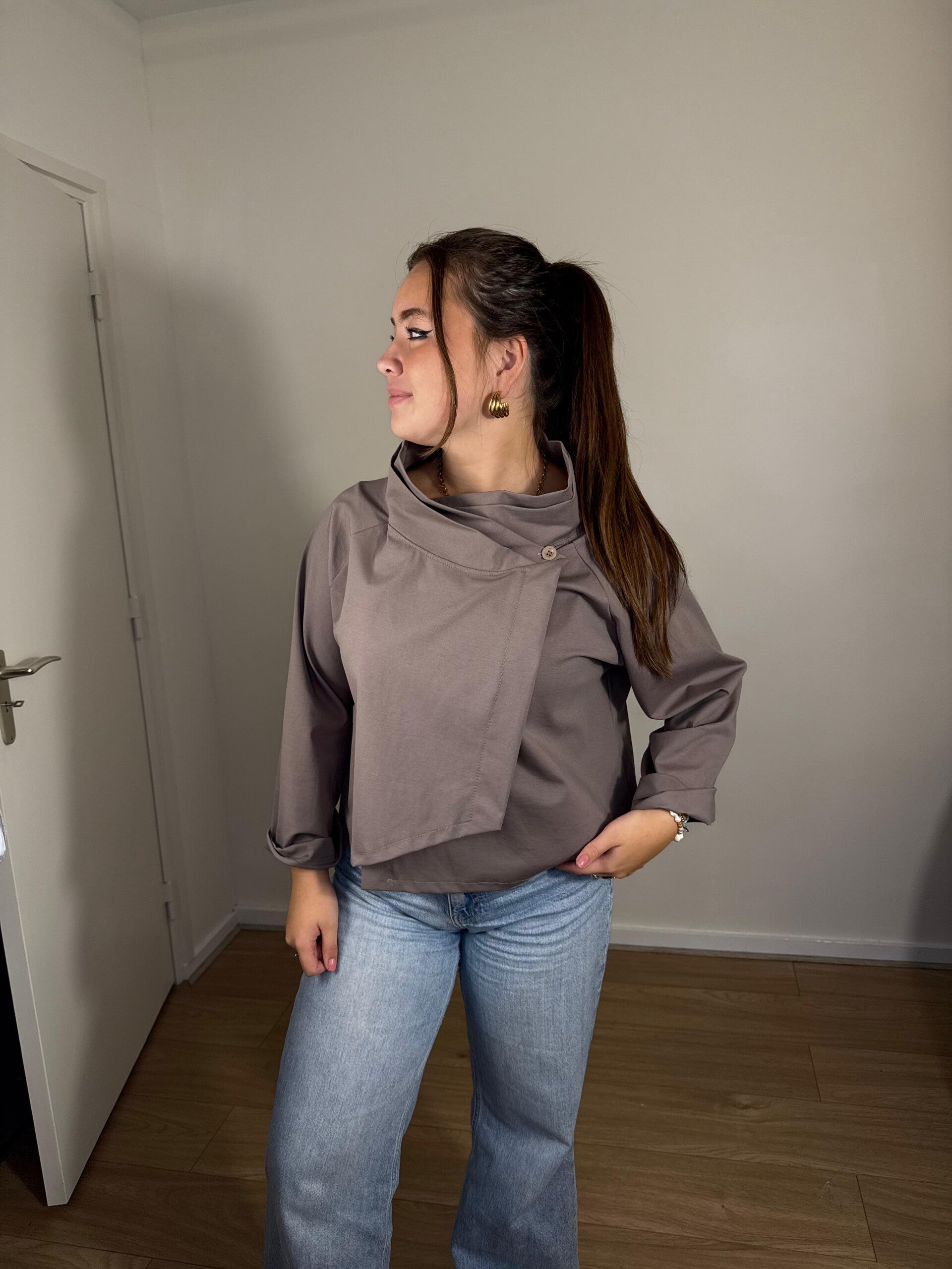 Ga voor een elegante en moderne look met deze blouse/top, voorzien van cape en een stijlvolle kraag. Perfect te combineren met een broek, rok of zelfs een jeans voor een chique of casual outfit.