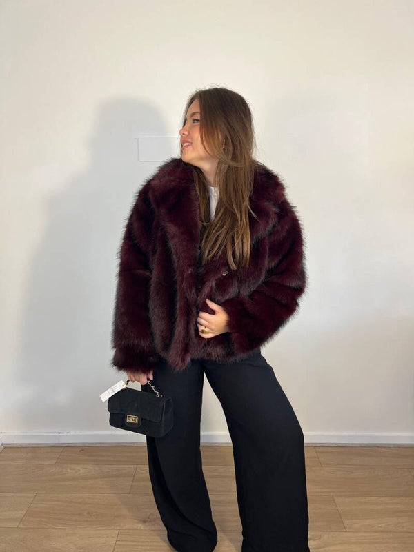Superleuke bontjas in bordeaux rood