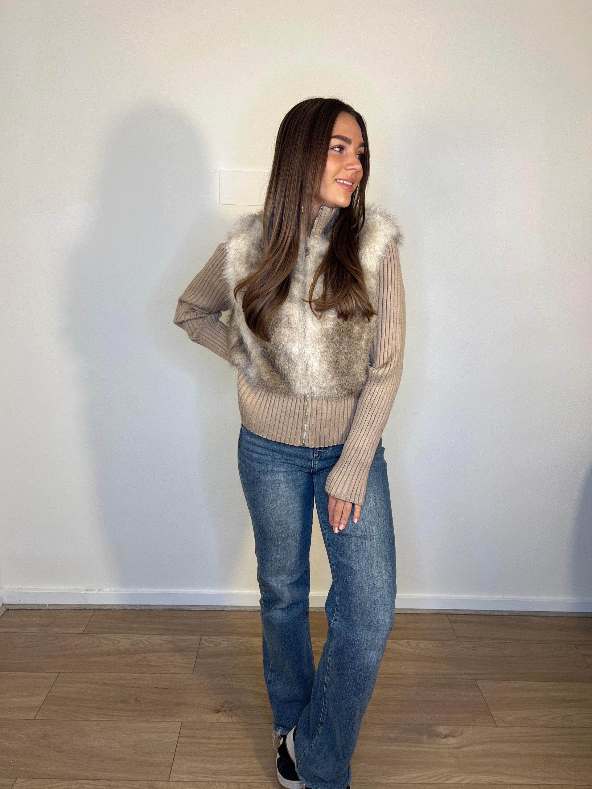 866 Vest met bont beige
