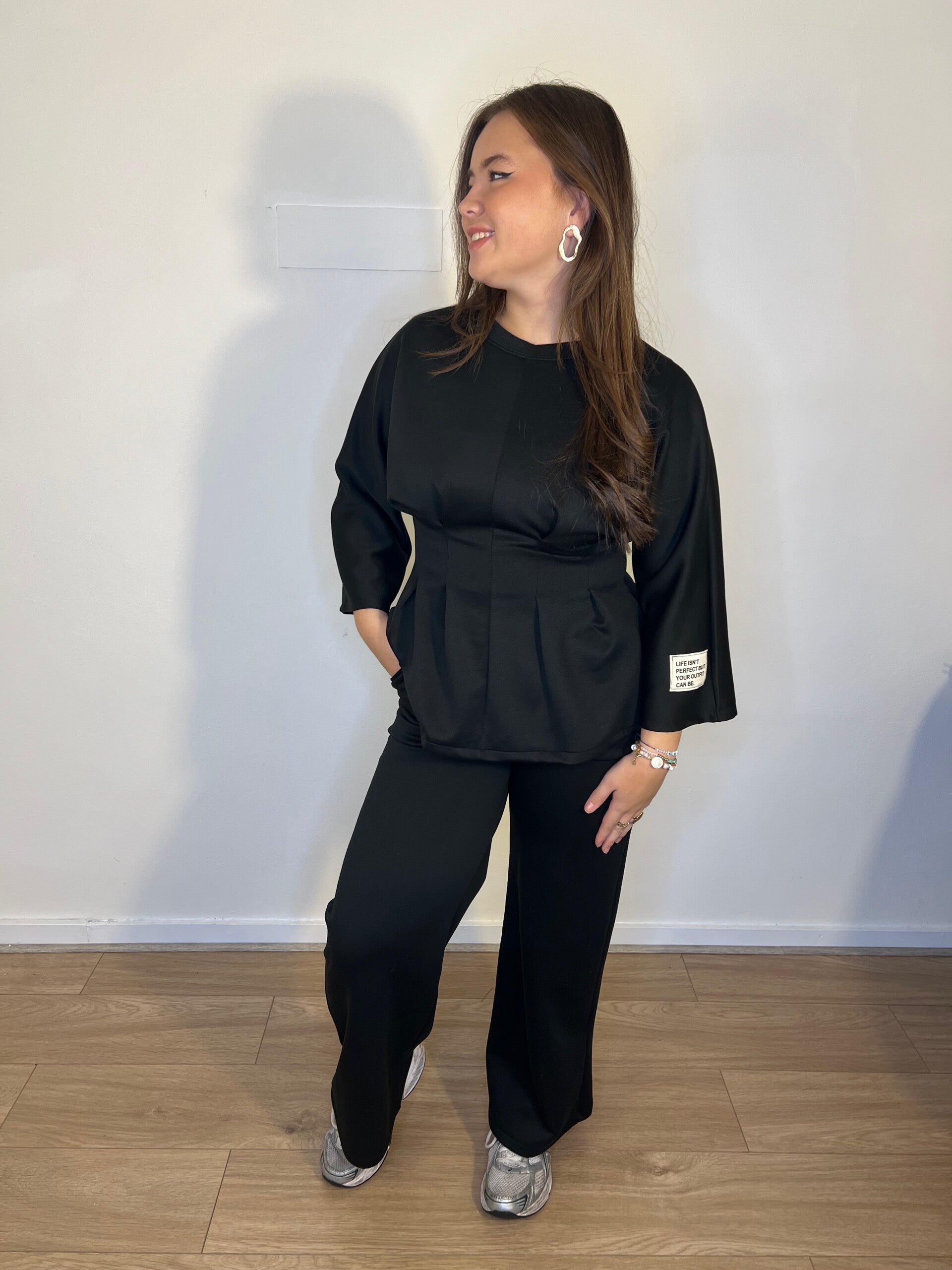 Ga voor stijl en comfort met dit heerlijke tweedelige pak. Het zachte design heeft een getailleerde taille, een broek met wijde uitloop en elegante mouwen. Met het bekende logo maak je een echte statement look.
