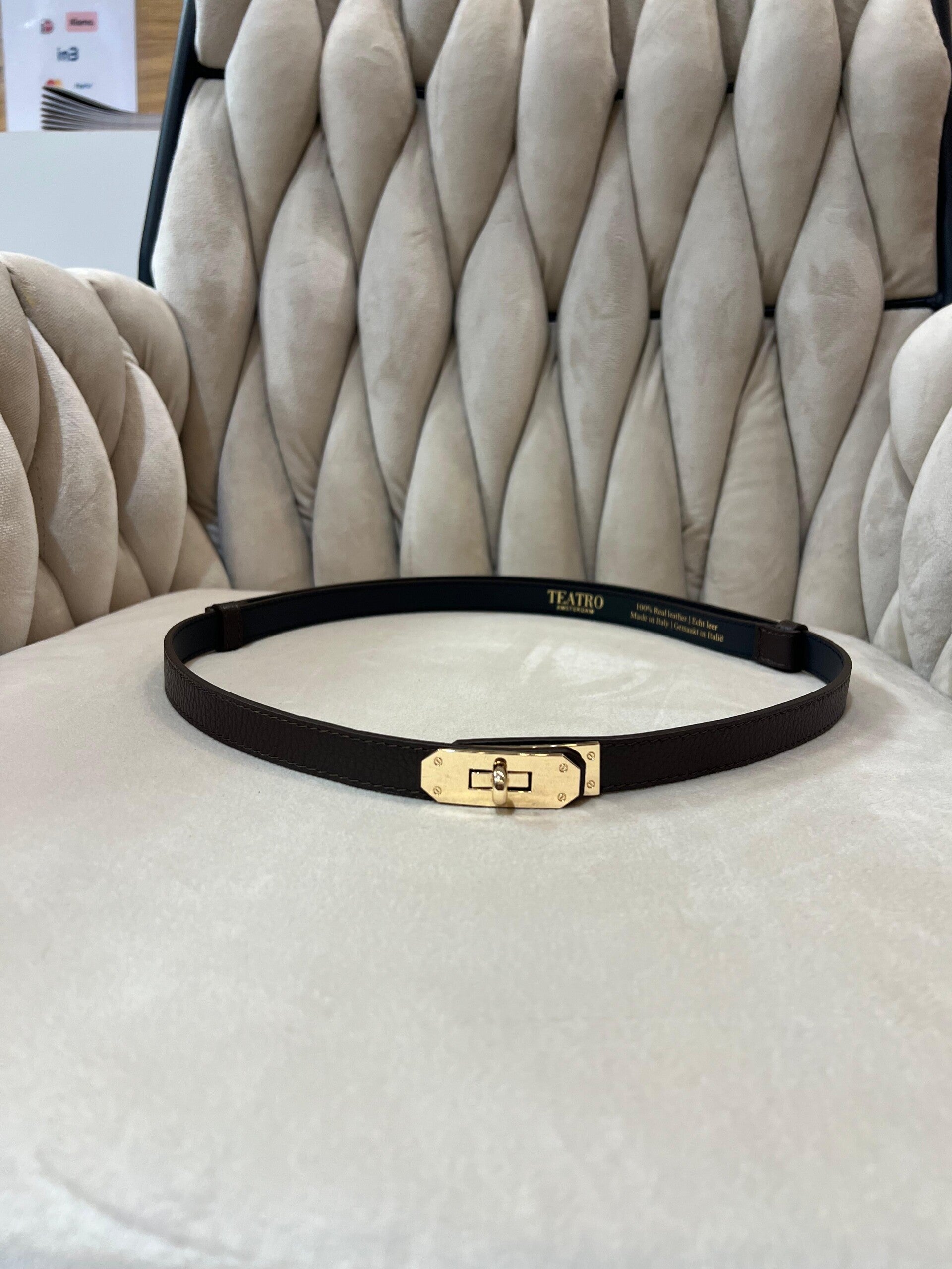 Geef je outfit een chique upgrade met deze bruine riem. De subtiele tint maakt hem makkelijk te combineren, terwijl de gouden sluiting zorgt voor een stijlvolle, luxe uitstraling. Perfect om je taille te accentueren of als finishing touch over een jurk, blouse of blazer