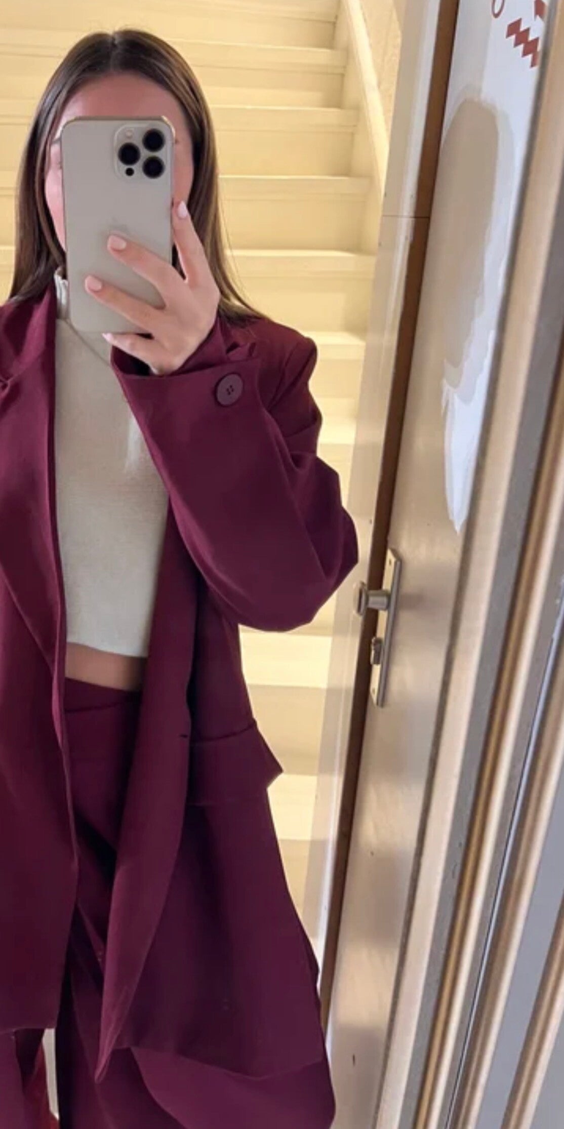Deze bordeaux ballloon fit pantalon heeft een modern ontwerp,asymmetrische sluiting met knoop zorgt voor jouw trendy look die een veelzijdigheid heeft voor een casual,chique gelegenheden.