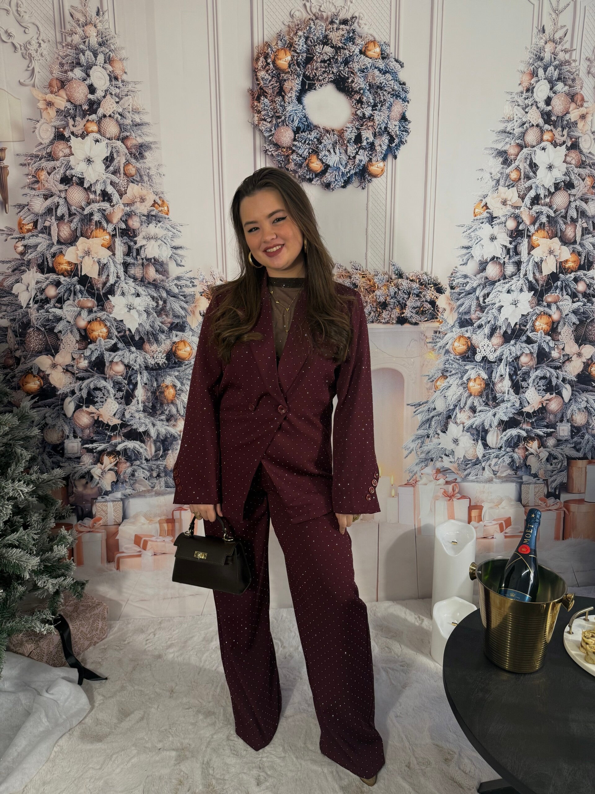 999 Glitter studs pantalon wide leg Bordeaux Rood