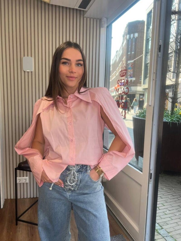 Deze geweldige cut open sleeve blouse met een straight fit in de kleur roze mag toch niet ontbreken in jouw garderobe?
