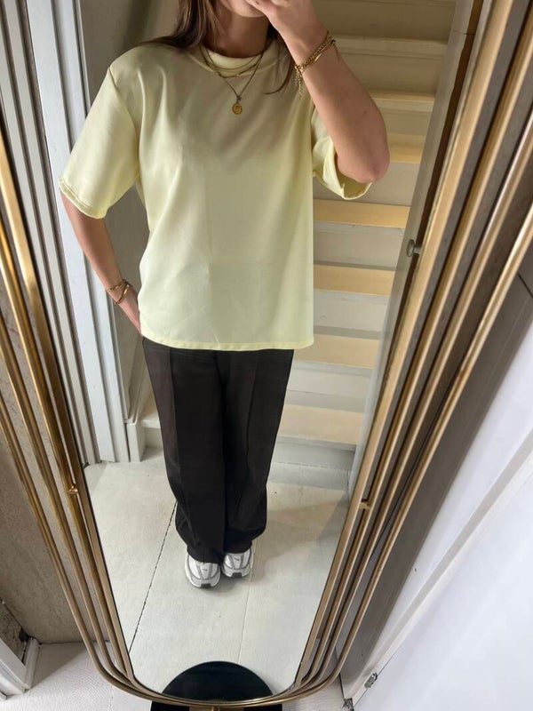 Deze basic gele top met schouderpads is een echte must-have voor je garderobe π