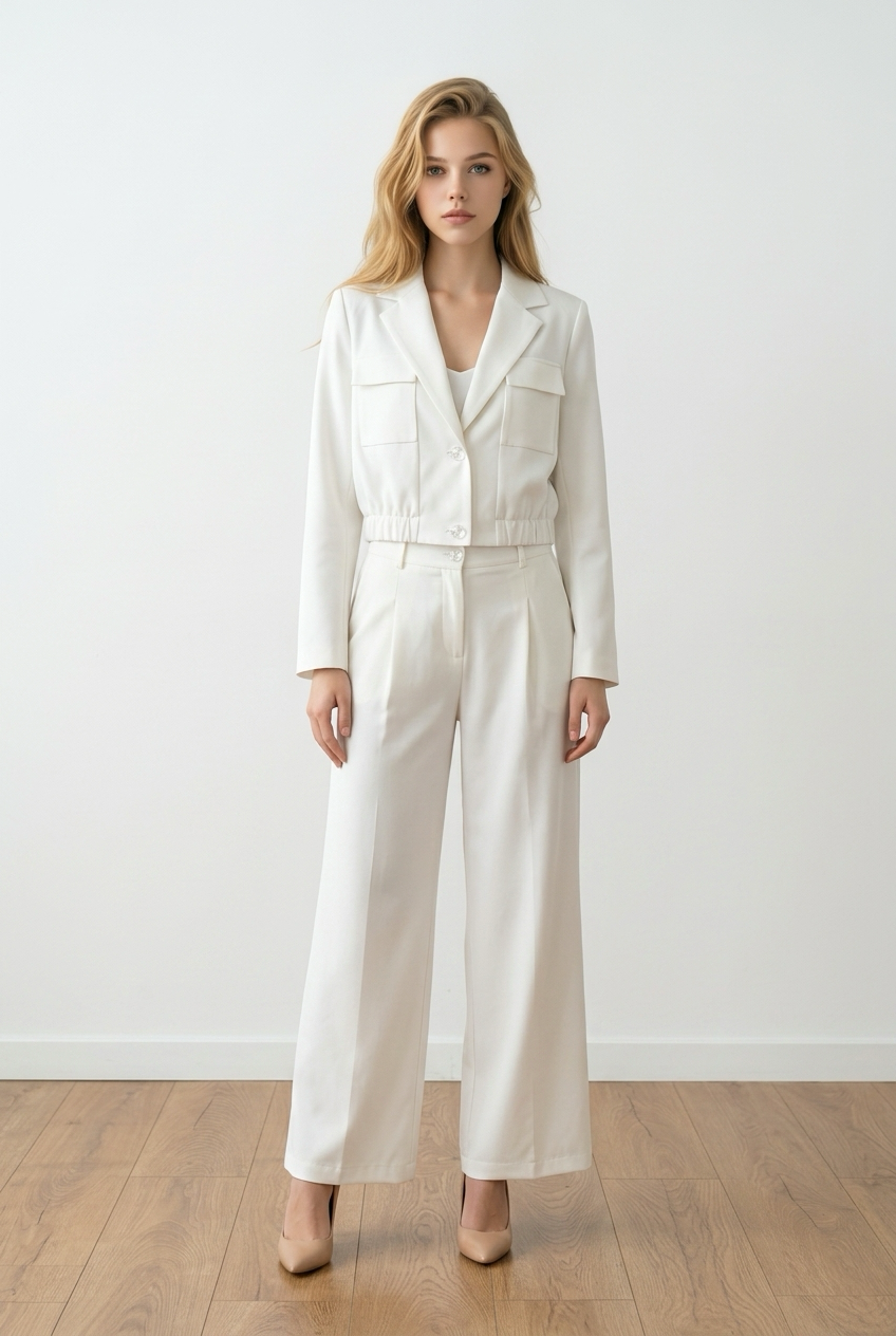 Maak je outfit compleet met deze elegante pantalon. De soepelvallende stof en rechte pijpen zorgen voor een tijdloze en verfijnde uitstraling. Dankzij de comfortabele pasvorm is deze broek perfect voor zowel een casual als een geklede look. Combineer met het bijpassende jasje voor een stijlvolle en moeiteloze co-ord set.