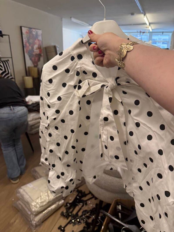 De Lily Polka Bow Blouse is een elegante en vrouwelijke blouse top. Achterkant bevat een open achterkant met strik.